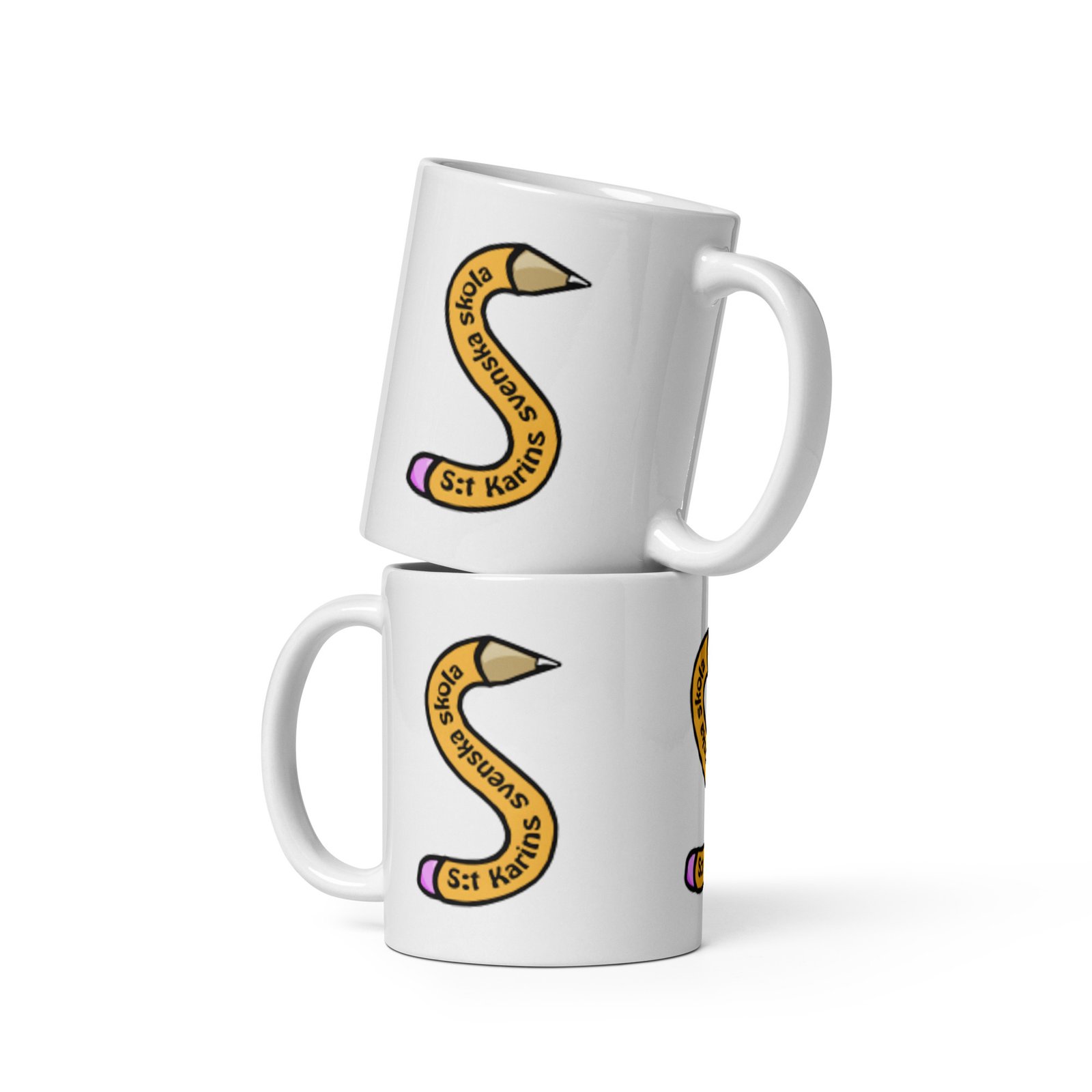 Mugg S:t Karins Svenska Skola är en glad vardagsfavorit för både kaffe och te. Den har skolans penna-logo på båda sidor, så den syns oavsett hur du håller muggen. Muggen är stadig och blank, med tydligt tryck som håller länge. Den tål både mikrovågsugn och diskmaskin, vilket gör den enkel att använda varje dag.