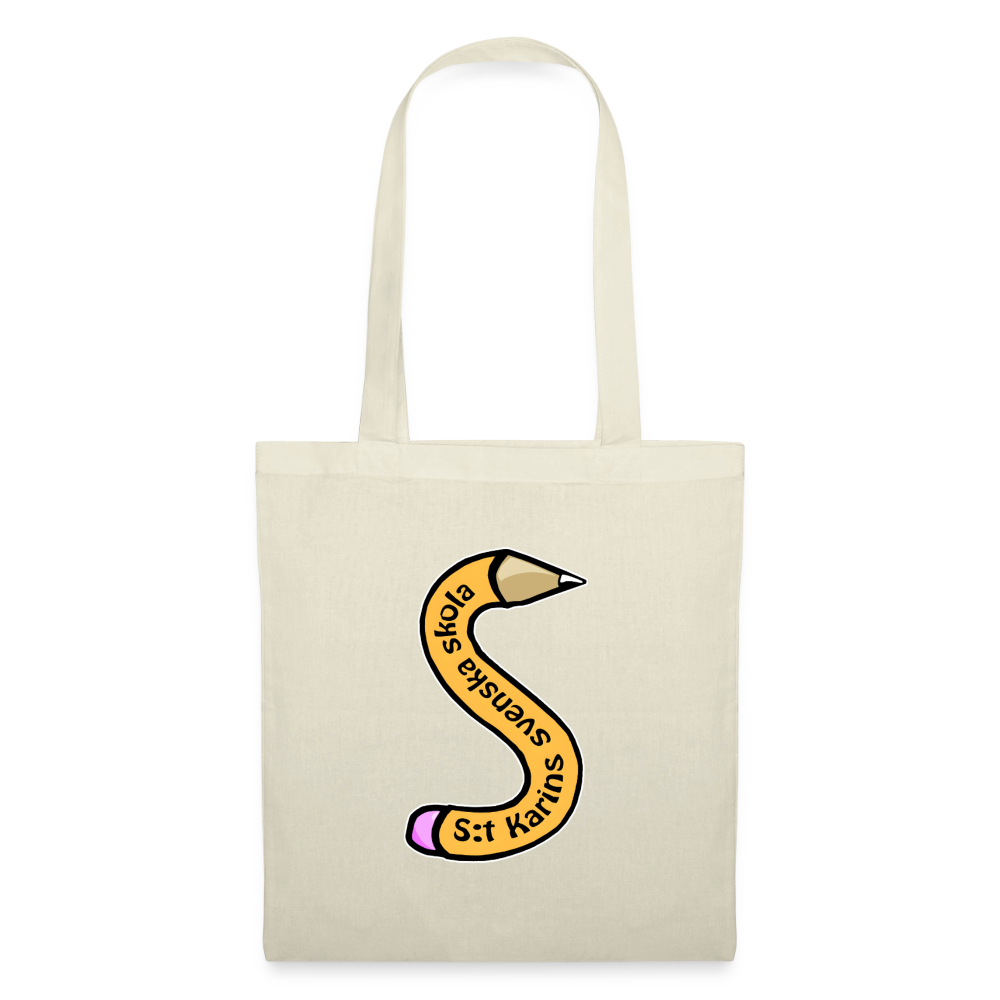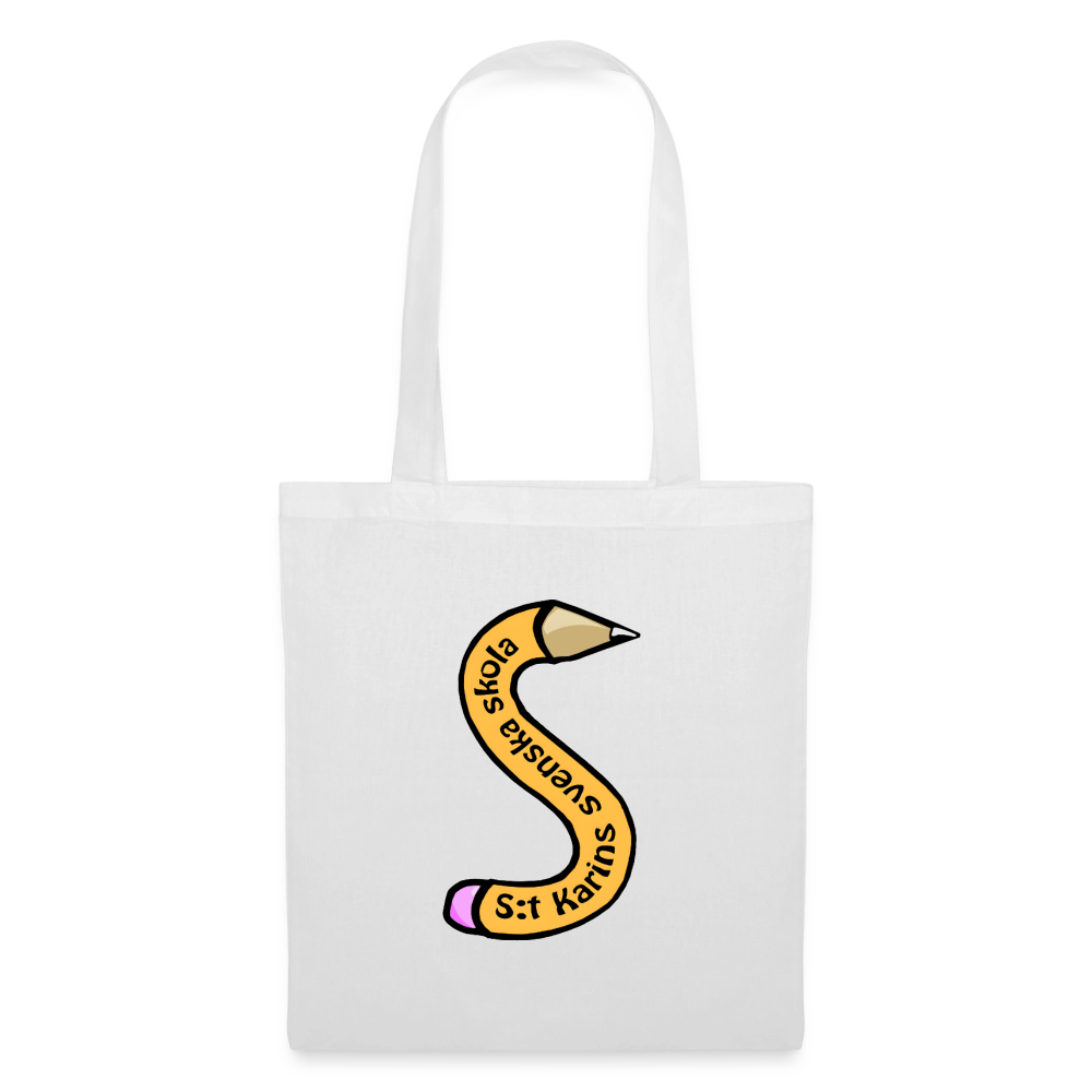 En lätt tygväska med S:t Karins svenska skolans penna-logo. Perfekt för vardag, skola och shopping. Enkel att bära och använda varje dag.
